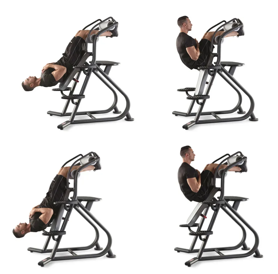 Машина полностью настраивается с помощью регулировки начального угла и высоты. Тележка с газовым амортизатором и противовесом позволяет легко регулировать высоту вращающихся центров, что делает тренажер подходящим для людей с разным типом телосложения и потребностями тренировок.